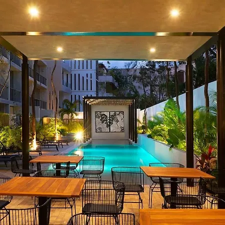 Lägenheten Comfort & Style In Tulum 2Br - Pool Access - A209 med 2 sovrum, som ligger inom 4 km från Tulums strand, har en parkering för dem som reser med bil. Gästerna kan nå flygplatsen Playa del Carmen inom 54 minuter med bil.